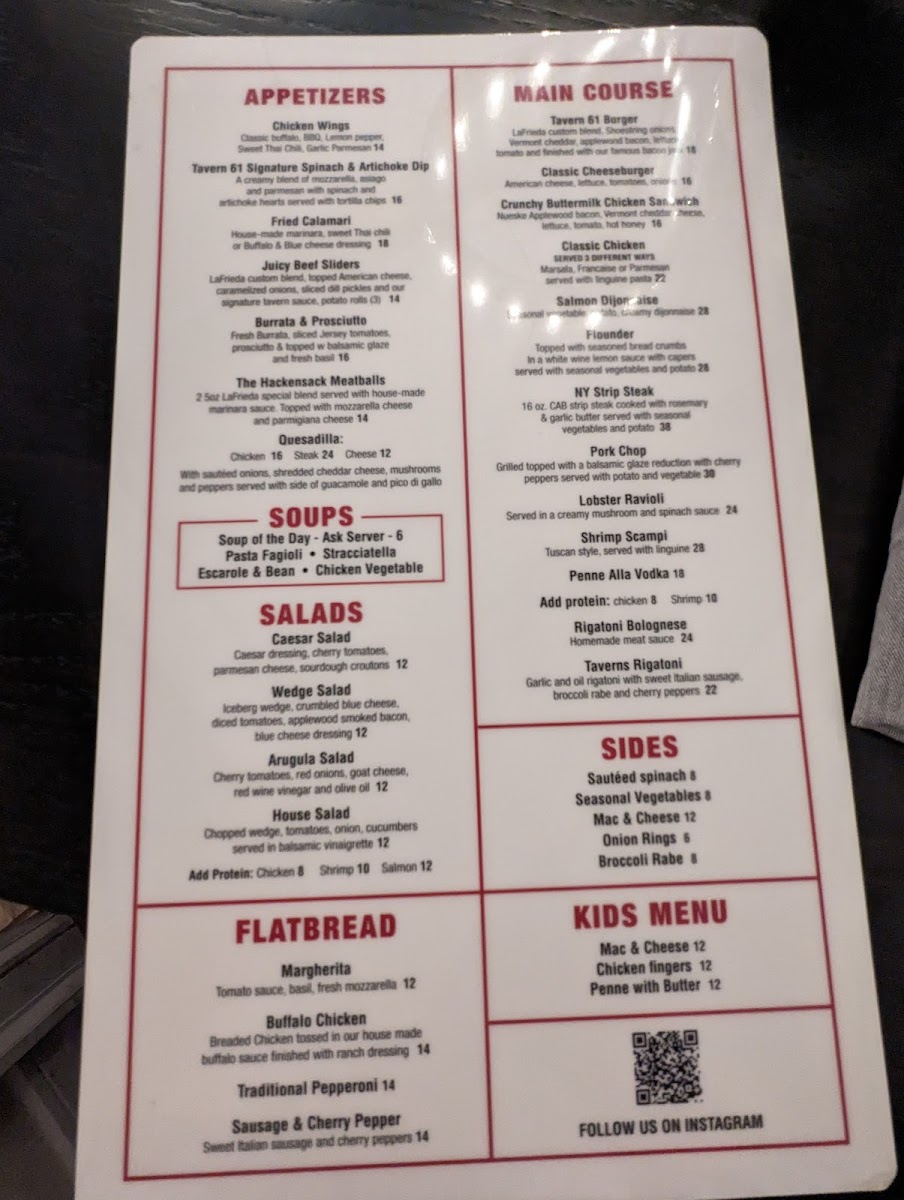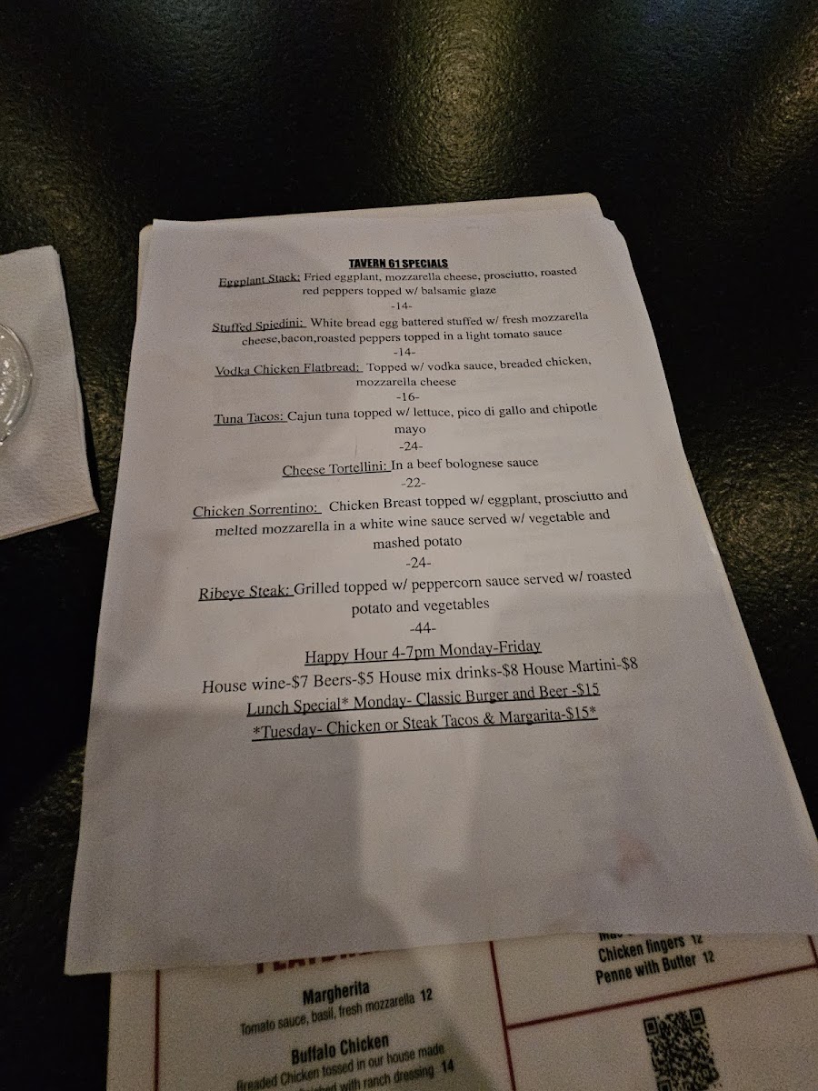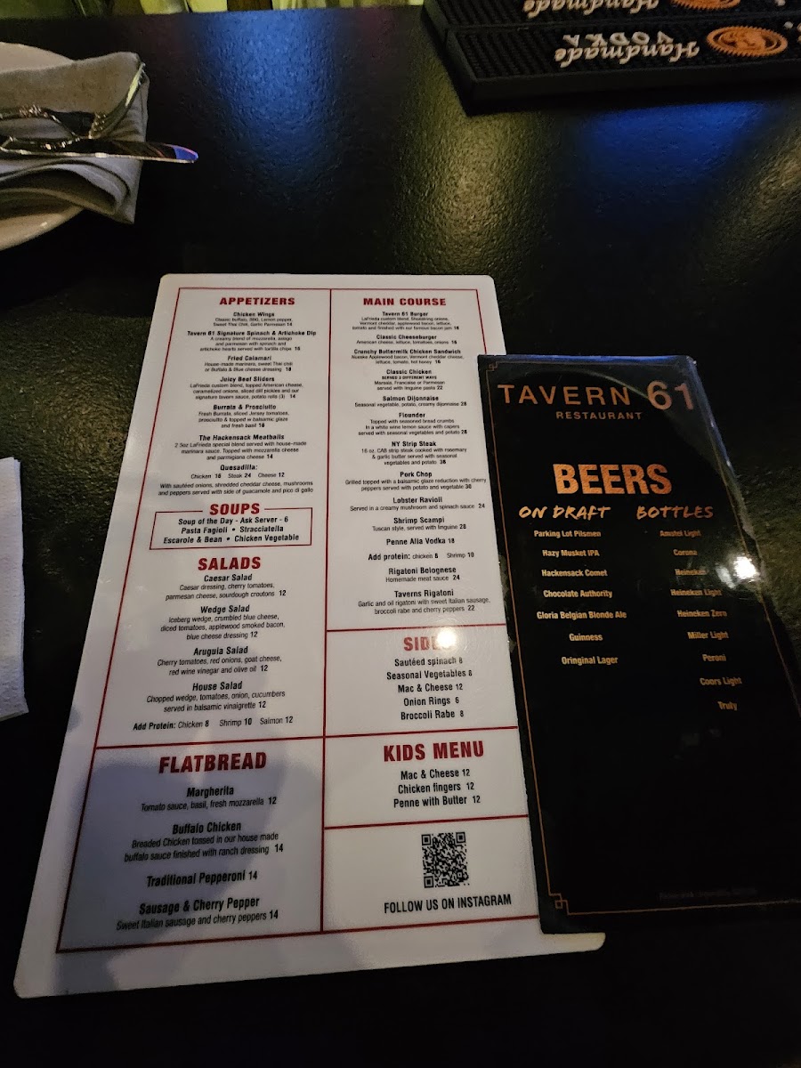 At Tavern 61, you're in for a treat with a menu that showcases both comfort food and creative dishes to keep you coming back for more. Located on 61 River St in Hackensack, NJ, this cozy spot offers a variety of options perfect for any craving. From mouthwatering burgers to fresh seafood, every bite promises a burst of flavor. The hand-crafted sandwiches and hearty entrees offer something for every palate, whether you're in the mood for a classic or something with a twist. The relaxed atmosphere and friendly service make it a great place for a meal with friends or a casual night out. With so much to choose from, you're sure to find your new favorite dish here at Tavern 61.